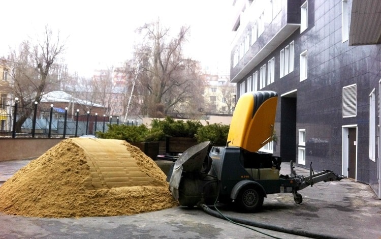 Применение немецкого растворонасоса (пневмонагнетателя) Putzmeister позволяет добиться высокого качества и скорости смешивания, однородного состава стяжки на всей площади помещения. Мы рекомендуем не отступать от технологии производства полусухой стяжки и проводить работы с использованием растворонасоса (пневмонагнетателя), а не бетономешалок.
